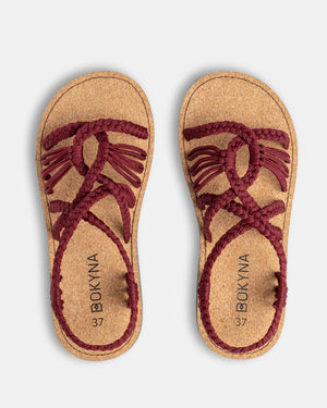 Our Freedom Bokyna sandals that you know and love, now available in a rich burgundy tone with a matching cork sole. Vamp up your outfit and look your best without sacrificing your comfort.
