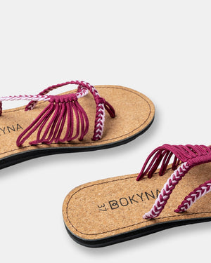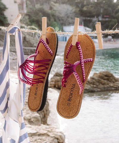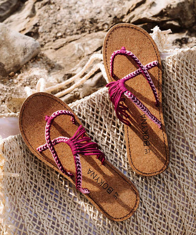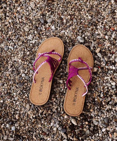 Embrace your innate femininity with these Bokyna flip-flops. Adorned with durable wave-shaped nylon straps in a stylish color combo of heart-fluttering pink and elegant violet, this pair of Bokynas is sure to turn around every head as you go for a walk down to the pier.